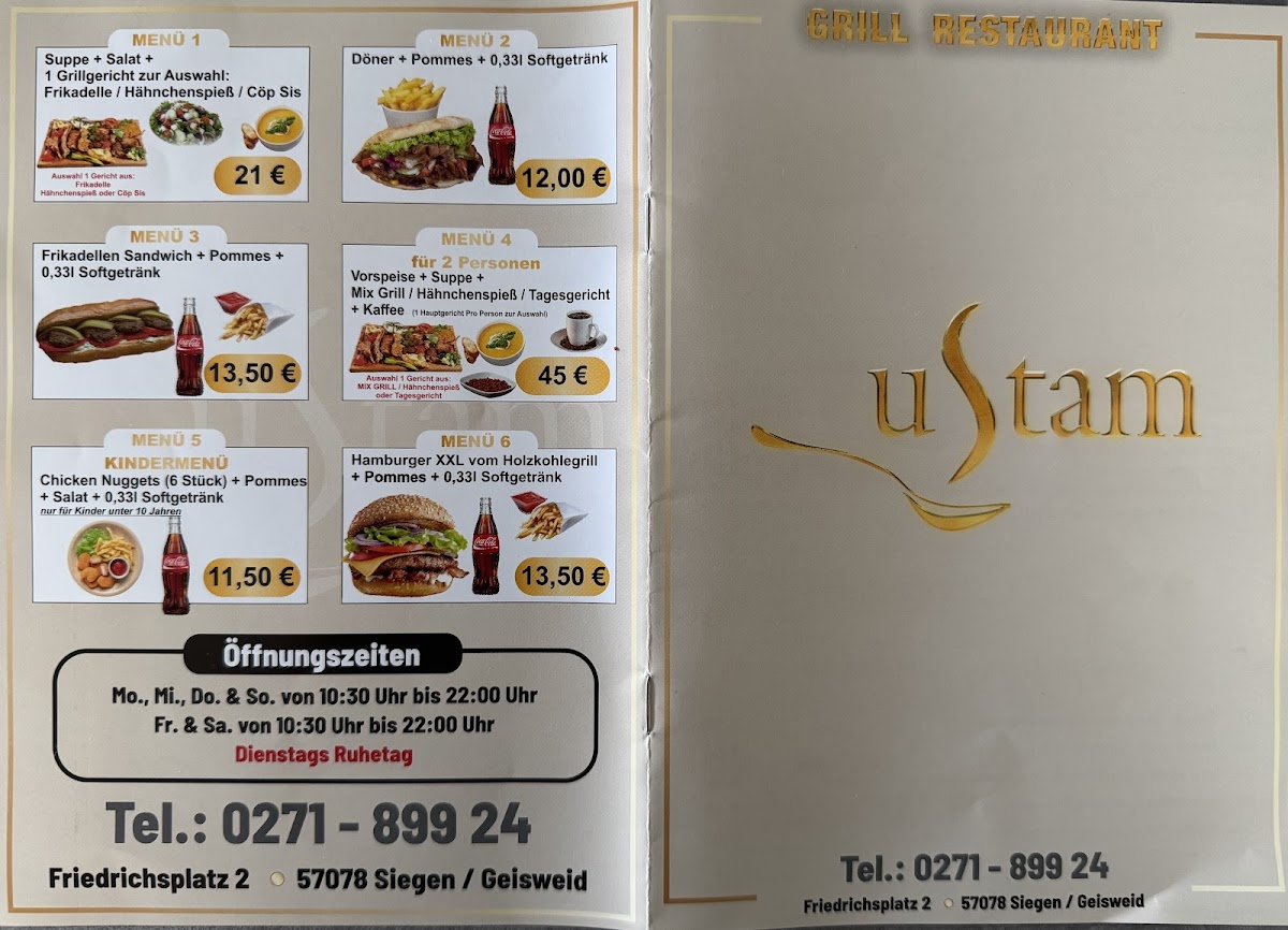 The menu at Ustam Grill in Siegen offers a welcoming blend of traditional Turkish dishes and familiar comforts, making it an inviting spot for casual meals or relaxed gatherings. With a focus on grilled specialties and flavorful small plates, the selection strikes a balance between hearty and light options, suited for lunch, dinner, or even a leisurely coffee break.